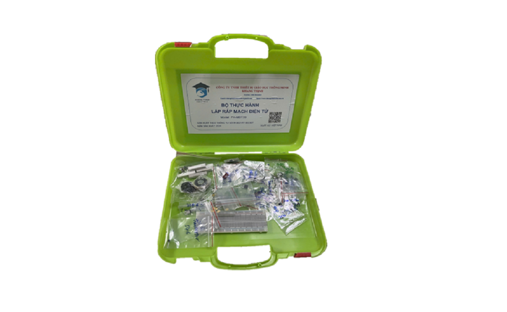 oĐiện trở than: các giá trị 100Ω, 180Ω, 470Ω, 1kΩ, 2.2kΩ, 4.7kΩ, 5.6kΩ, 330kΩ; công suất 0.25W; sai số 5%; hiển thị bằng vạch màu.