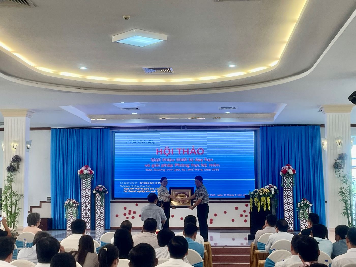 Ngày 31/03/2024,tại Nhà khách tỉnh Trà Vinh, Sở Giáo Dục và Đào Tạo tỉnh Trà Vinh chủ trì phối hợp cùng các ban,ngành chuyên môn và Hiệp hội Thiết bị giáo dục Việt Nam tổ chức Hội thảo giới thiệu thiết bị dạy học và giải pháp phòng học bộ môn 2024 thực hiện chương trình GDPT 2018 và thông tư 37,38,,39/2021/TT-BGDĐT của Bộ Giáo Dục và Đào Tạo.