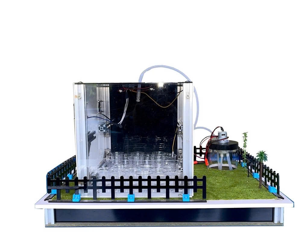 - Téc chứa nước tưới và làm mát, trụ nhôm 20x20, hàng rào, các cây trang trí,…