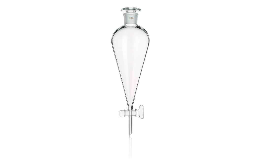 Thủy tinh trung tính, chịu nhiệt, dung tích 60ml, chiều dài của phễu 270mm, đường kính lớn của phễu Φ67mm, đường kính cổ phễu Φ19mm dài 20mm (có khoá kín) và ống dẫn có đường kính Φ6mm dài 120mm.